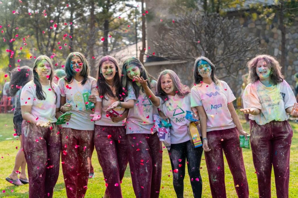 The festival of colours was celebrated on campus with lots of joy, enthusiasm, music, dance and good food. Staff and students gathered at the athletic field and enjoyed smearing each other’s faces with organic colours. While students would have loved the play with water but in view of the mild chill in the weather, that was forbidden. The flash mob was enjoyed by all. Everyone joined in the dance on foot tapping numbers. Three rounds of tug of war added to the exuberance of the celebration. The gujiyas and hot pakoras from the Dining Hall were the perfect accompaniment to the festivities.