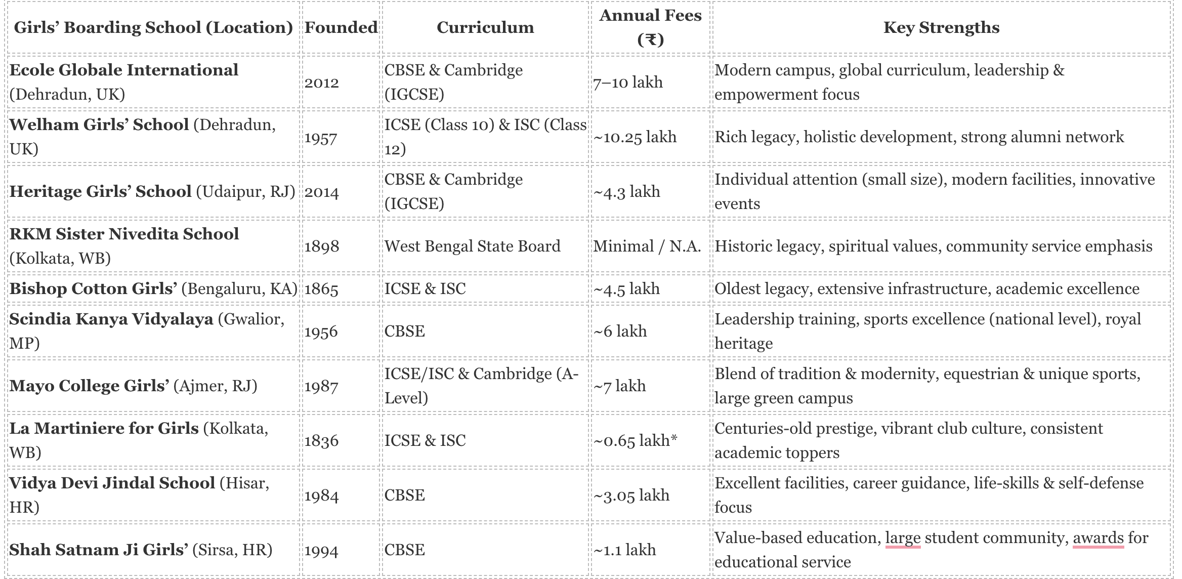 - The top girls boarding schools in India for the 2025-26 academic year include Ecole Globale, Welham Girls, Bishot cotton and many more. These schools are renowned for their academic excellence, state-of-the-art facilities, and holistic development programs.