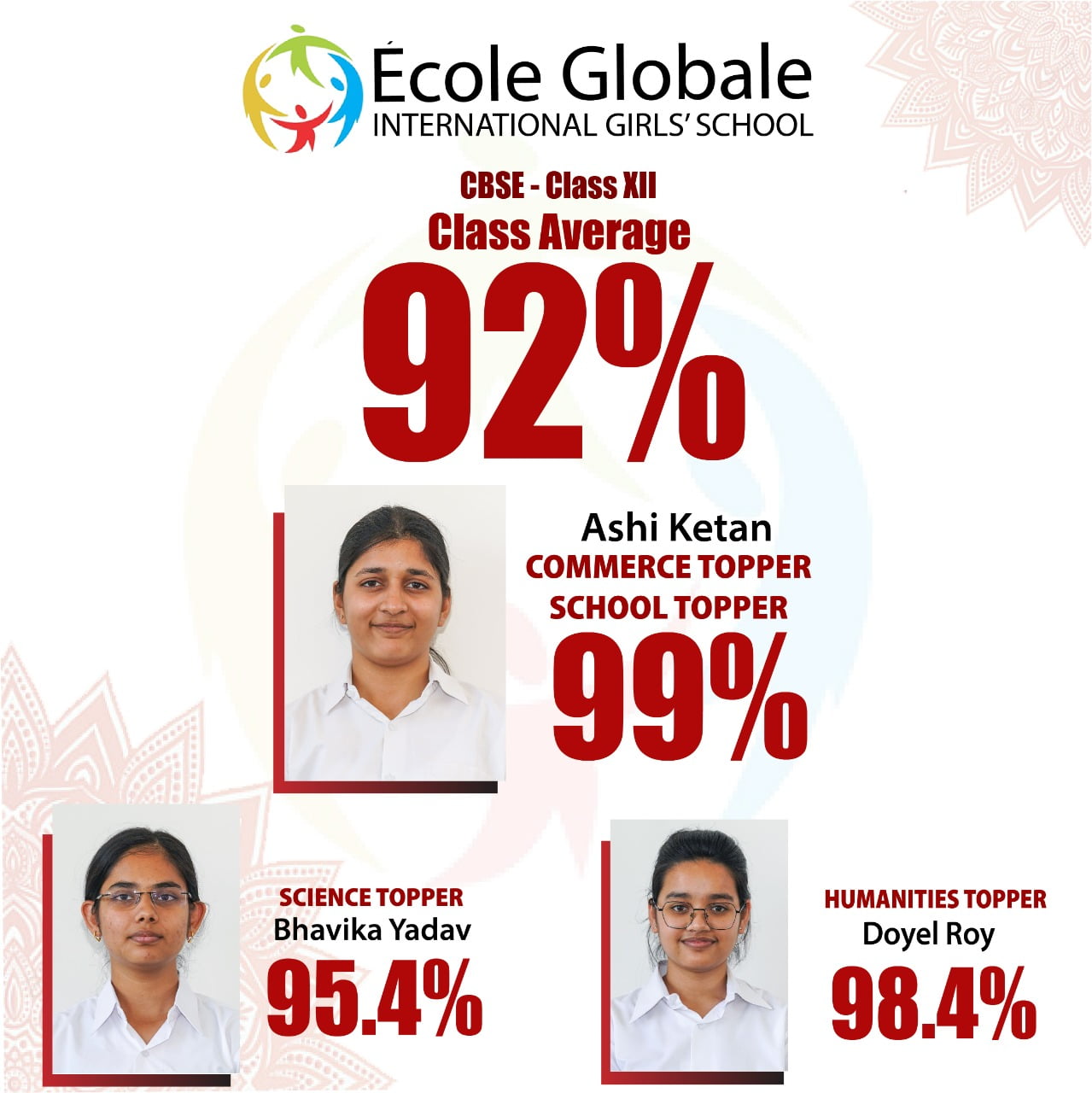 Students from Ecole Globale International Girls’ School excelled in their 12th CBSE