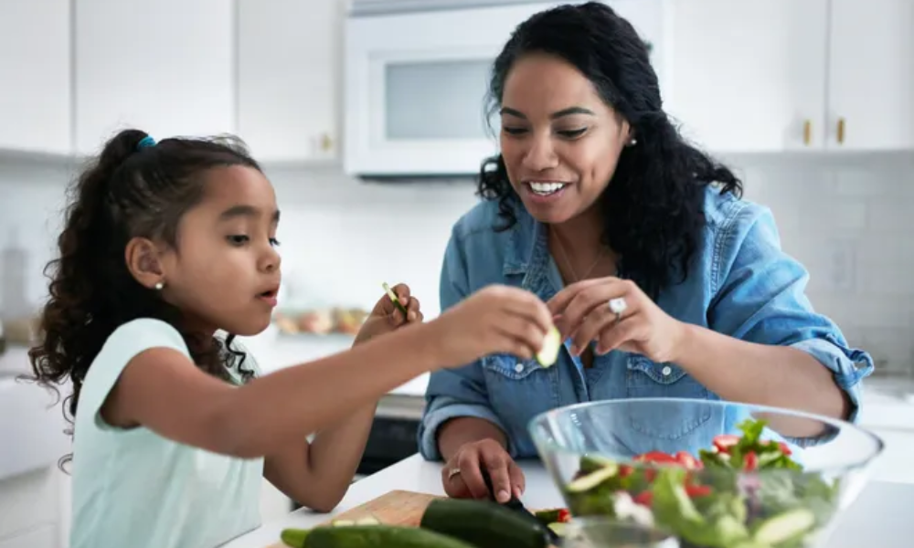 Engage your kids in cooking simple and fun recipes, like homemade pizza or fruit salads, to make them excited about healthy eating.