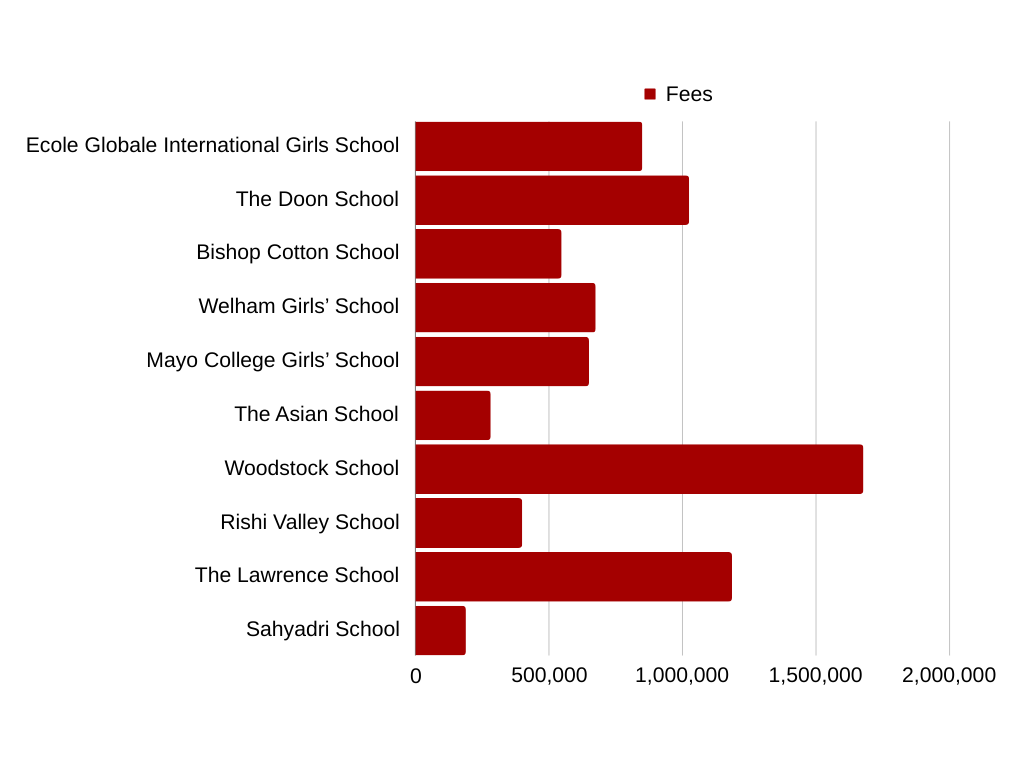 Ecole Globale International Girls’ School, Dehradun, The Doon School, Dehradun, Bishop Cotton School, Shimla, Welham Girls School, Dehradun, Mayo College, Ajmer, The Asian School, Dehradun, Woodstock School, Mussoorie, Jain International Residential School, The Lawrence School Sanawar,Good Shepherd International School, Canadian International School, Stonehill International School, The International School Bangalore, Kodaikanal International School, The Aga Khan Academy, Good Shepherd International School,Shayadri School, Rishi Valley School, Trio World Academy, Hebron School, Sreenidhi International School, and Candor International School