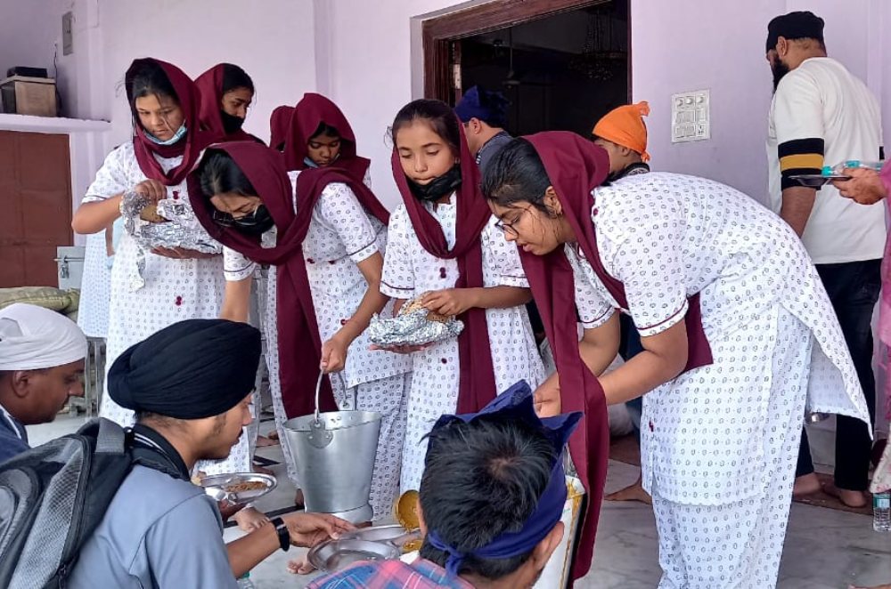 Nine students along with Ms Pratiksha went for Community Service to a Gurudwara. They attended the satsang. Thereafter they went to the Community Kitchen and volunteered their service there. The girls served food to the devotees during langar and later on helped in cleaning the area. It was a wonderful day as for many it was their first ever visit to a Gurudwara.They had a great sense of fulfillment as they internalized the spirit of Sewa.