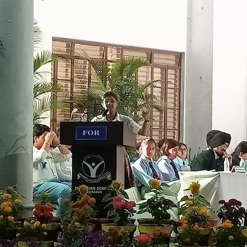 Each speaker was allotted three minutes to present their arguments, followed by a rebuttal round to address questions. Both girls presented their arguments confidently and thoughtfully. They were cheered by an audience of 10 Ecoliers who had accompanied them to witness the event.It was a wonderful exposure for all our girls.