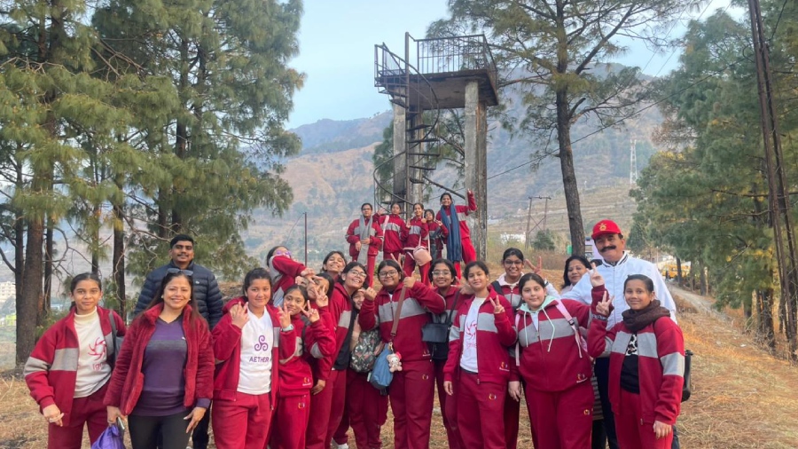 With scenic views all around, the girls marched ahead in high spirits while Hardik Sir seamlessly transitioned into “Guide Extraordinaire,” sharing fascinating trivia about pine trees, the workings of the forest department, solar panels, and the surrounding landscape.